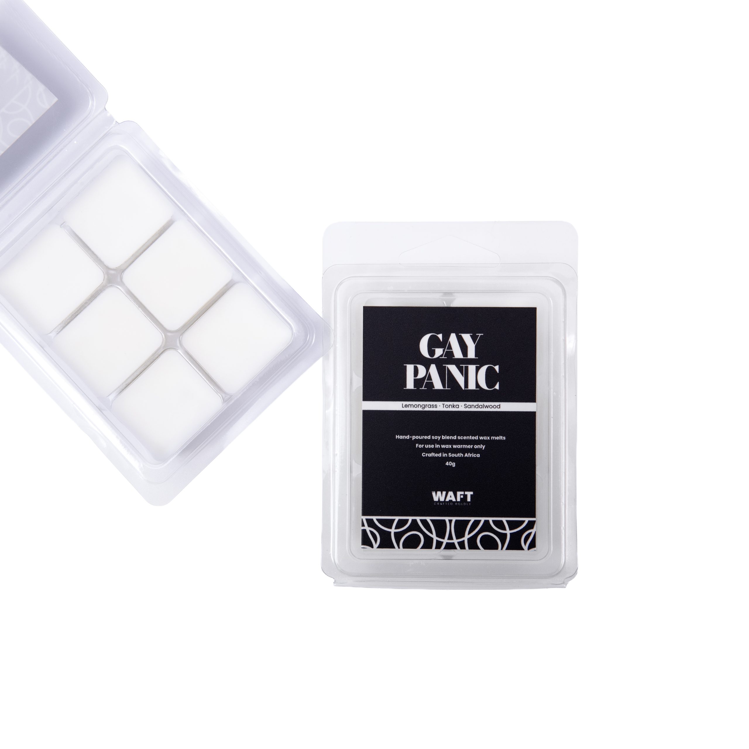 Strong wax melts for when your mind hits the extra button for no apparent reason. Gay Panic as a wax melt is all scent, no flame. Designed for high throw and fast room fill, it shifts the mood quickly and stays present long after melting.